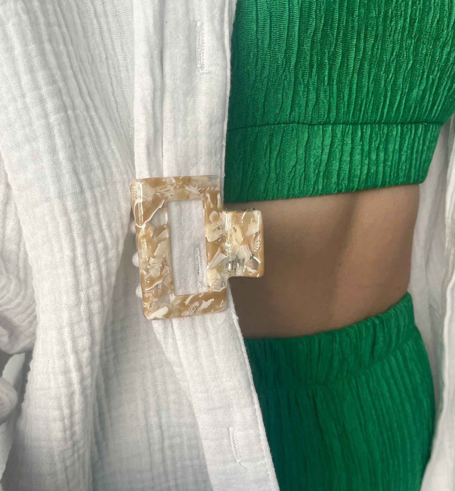 Unsere Haarspangen bestehen aus dem modifizierten Naturstoff Celluloseacetat, einer nachhaltigen Alternative zu herkömmlichem Plastik. Zudem achten wir bei der Verpackung unserer Produkte auf unsere Umwelt, indem alle Bestandteile entweder recyclebar, kompostierbar, biologisch abbaubar oder wiederverwendbar sind.